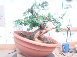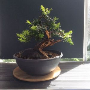Diese Eibe habe ich im Herbst 2014 bei Garten und Bonsai erworben. Die Erstgestaltung erfolgte in einem Workshop am 29. November 2014 bei Ralf Beckers mit John van der Lan. Die weitere Bearbeitung erfolgte ebenfalls bei Ralf Beckers mit dessen Unterstützung.
